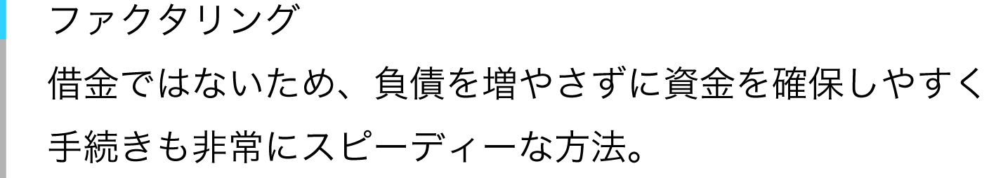 ファクタリングは「借入」とは違い、売掛債権を業者へ「売却」することで資金を得る調達手段です。